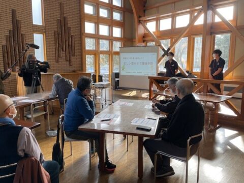 2ヶ月に1回開催している健康講座、今回は、開西病院リハビリテーション科理学療法士の橋本翔太氏と小沼雅久氏が、雪かきでの腰痛予防をテーマに、講座を開催しました。