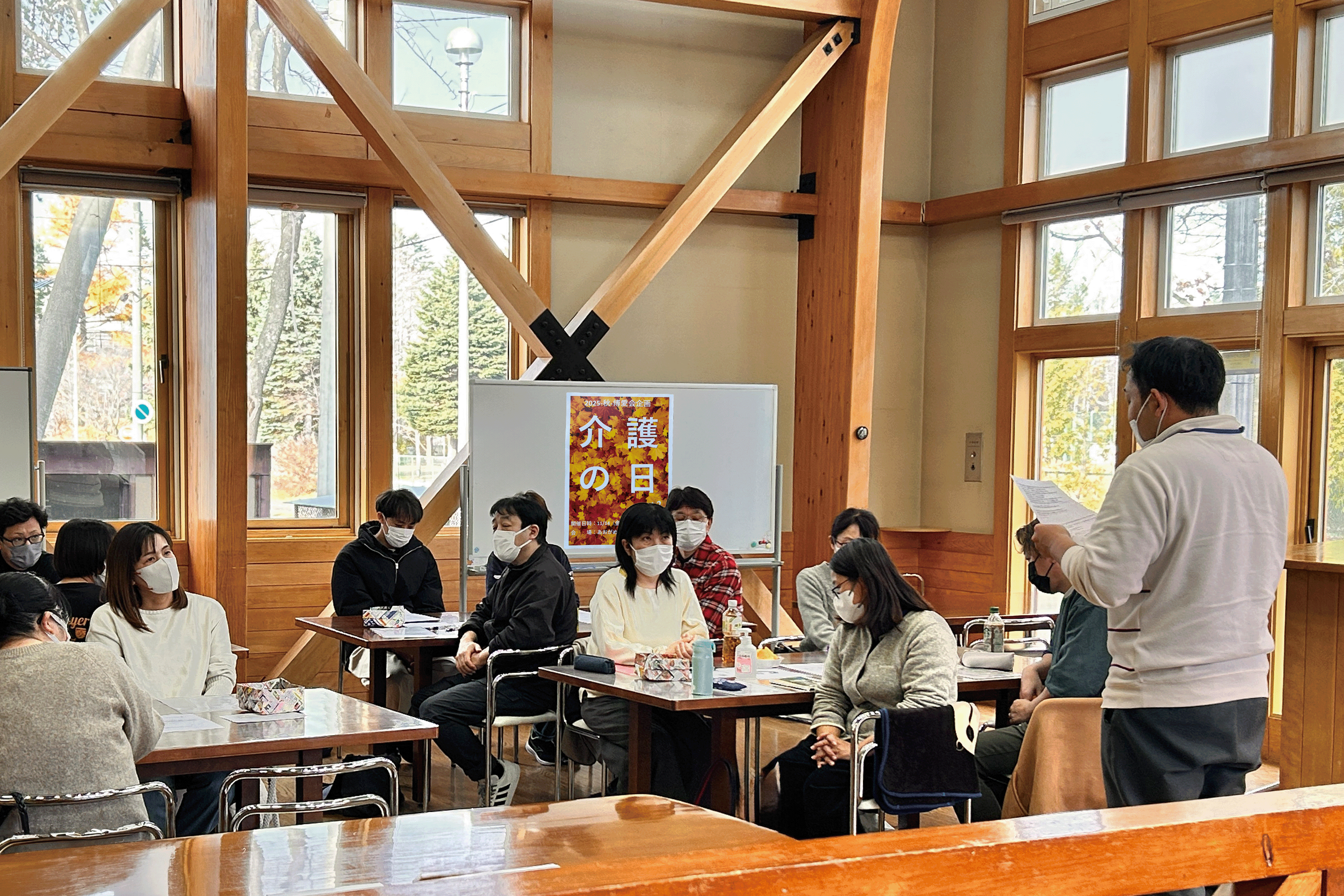博愛会では例年、介護の日にちなみ介護職の技術コンテスト「博愛会コンテスト」を開催してまいりましたが、昨年より新たな試みとして、職員同士が顔を合わせ、つながりを深めるグループワークを企画・開催しています。