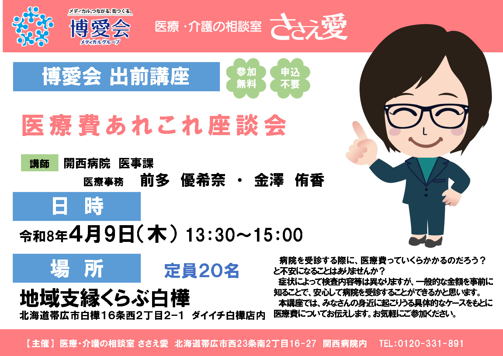 4月9日(木) ささえ愛 出前講座を開催いたします!